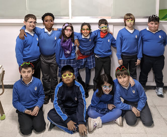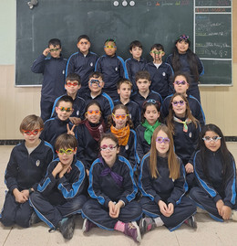 A lo largo de esta semana hemos celebrado el Carnaval en el cole. Cada día hemos venido ataviados con un complemento: en el pelo, en el cuello, en los pies... Hoy, además de venir disfrazados hemos realizado una manualidad para completar nuestro estilismo con unas coronas y unas gafas carnavalescas muy originales. Incluso los más pequeños de infantil, se han convertido en una obra artística al estilo Warhol. ¡Qué siga la fiesta!